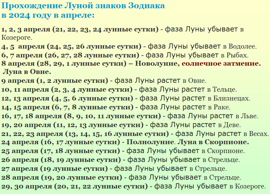 | Лунный календарь рыболова на апрель 2024 (календарные даты) | ||||||