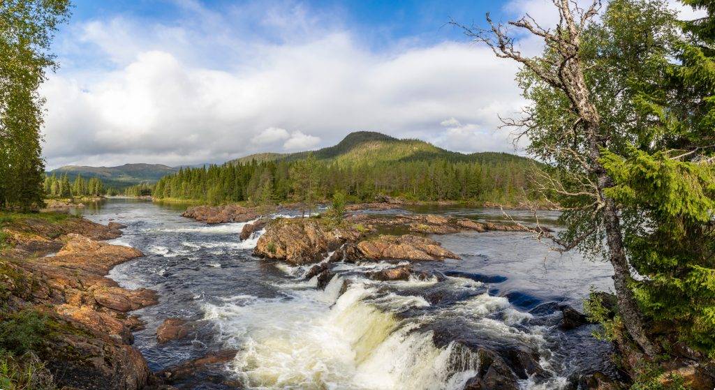 Рыбалка в Норвегии на лосося начинается в Намсене. Расположенная в самом сердце страны, река Намсен является одним из самых лососевых мест. Она протекает через графство Трёнделаг, землю, отмеченную пышными плодородными полями, бесконечными реками и скалистыми снежными горами. Неудивительно, что именно здесь обитает семга!
