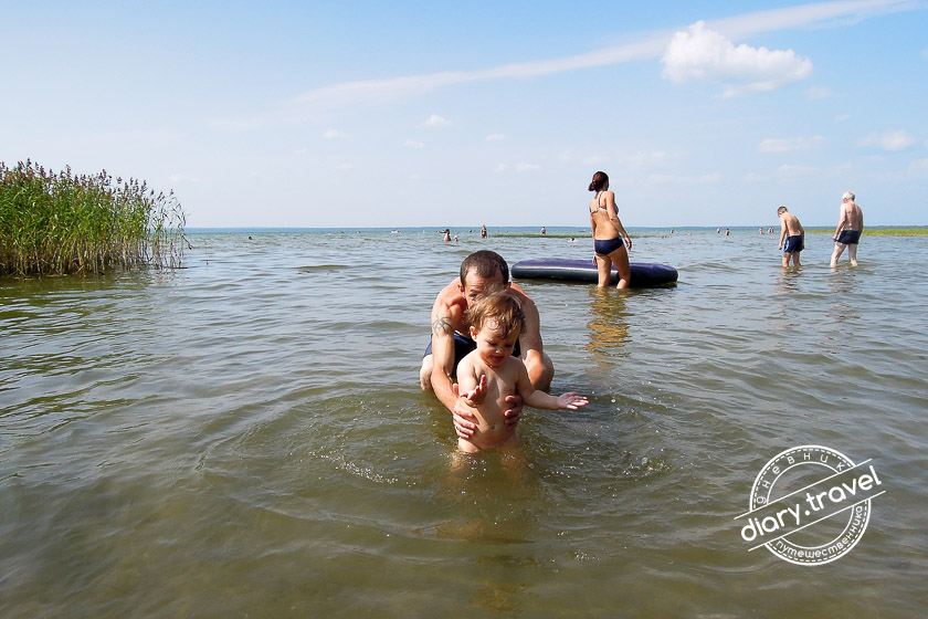 Песка, как на морском пляже, Вы здесь не найдете, но несмотря на покрытые травой берега, отдых вполне комфортен, в том числе и с маленькими детьми. Вход в озеро пологий, дно песчаное, никакого ила мы не обнаружили.