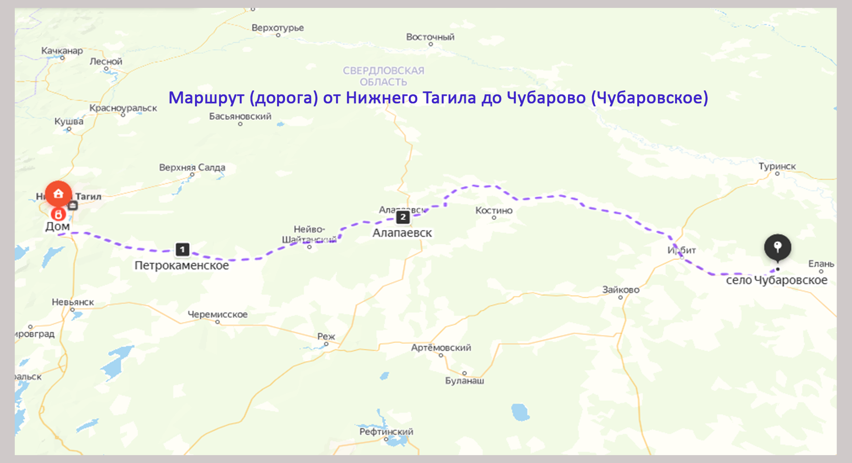 Маршрут проезда до деревни Чубарово из Нижнего Тагила