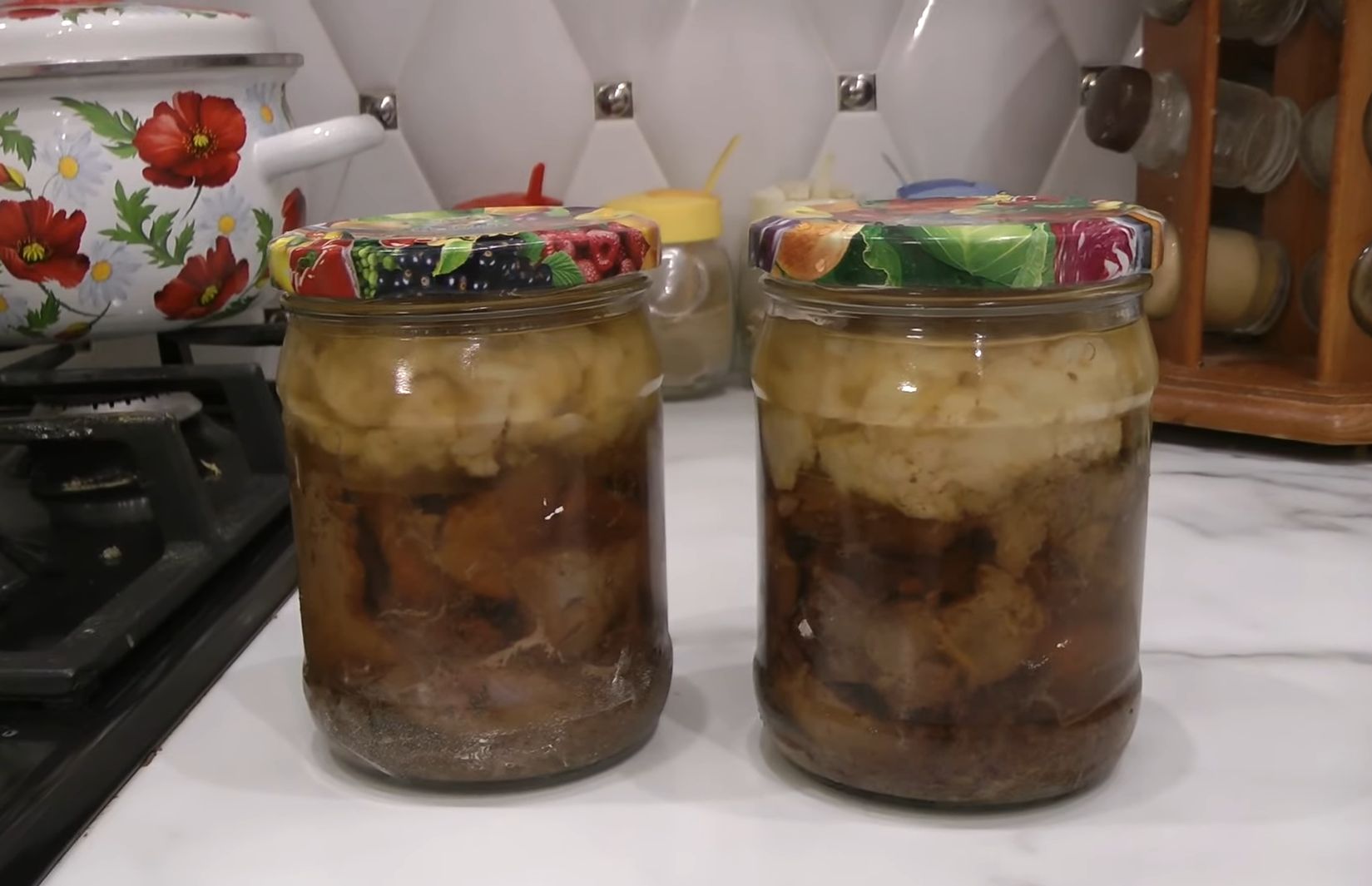 После этого на них надевают крышки и закатывают консервным ключом. Домашний автоклав устанавливают на газовую плиту и на максимальном огне доводят температуру в аппарате до 110 градусов, а затем удерживают ее в течение 1 часа. По истечении времени плиту выключают, а банки оставляют в аппарате до полного остывания.