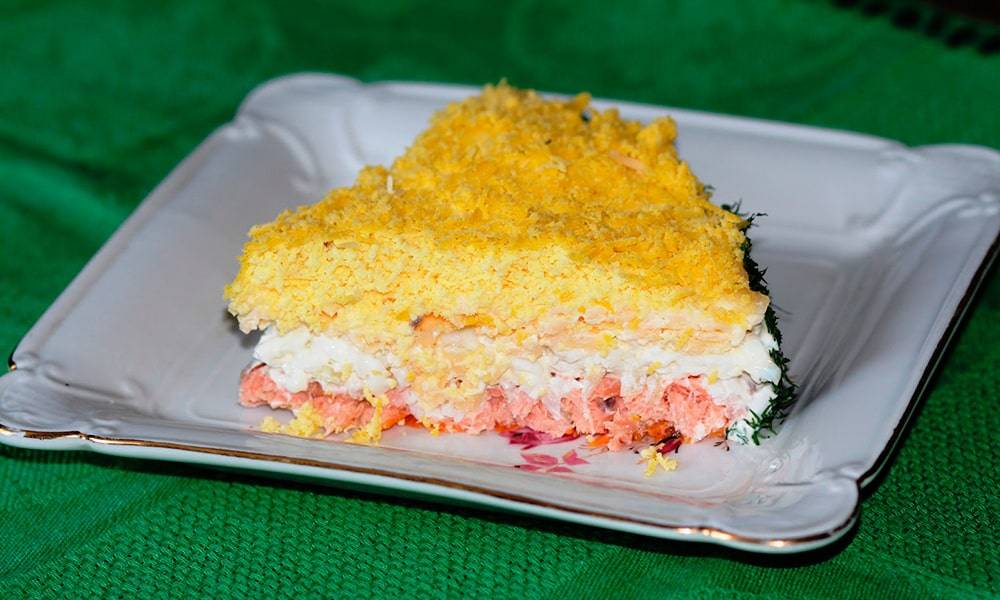 Пошаговый рецепт приготовления слоеной «Мимозы» с рыбой: