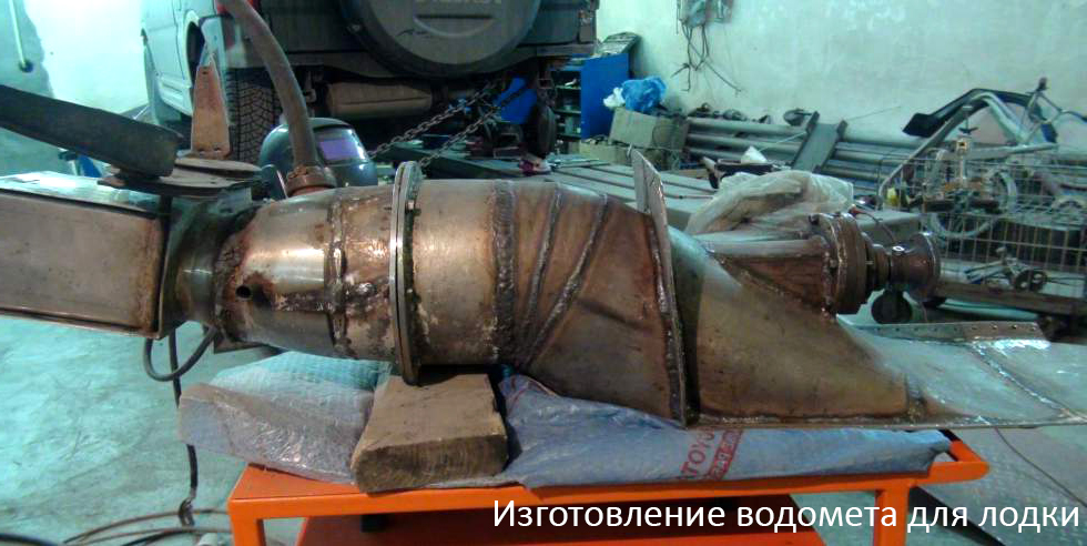 После предстоит выполнить большой объем сварочных работ: водоотвод и камера водомета получатся после сварки поперечных и продольных швов. Ступицу следует разместить на бобышке устройства. Место размещения водовода зависит от конструкции лодки: может располагаться в корпусе и за его пределами.