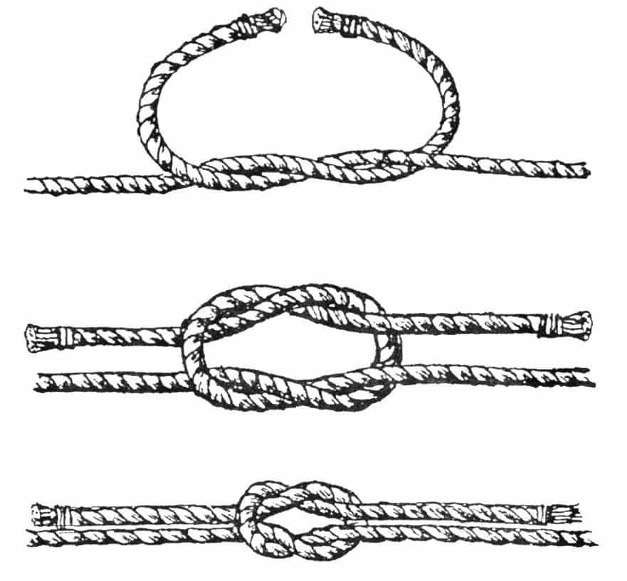 Встречный узел не ослабляется, но может сильнее затягиваться. Подходит для связывания одинаковых веревок.