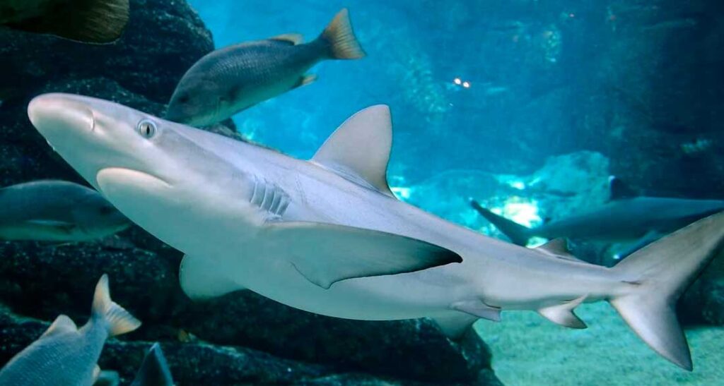 Пятую позицию занимает широко известная благодаря фильмам Стивена Спилберга большая белая акула. Этот находящийся на грани исчезновения вид хрящевых рыб может весить 1.9 т и достигать длинны тела более 6 метров. Белую акулу можно встретить у берегов Австралии, Кубы, Бразилии, Южно-Африканской Республики, Новой Зеландии и Калифорнии. Охотятся в основном на морских млекопитающих. Несмотря на сравнительную немногочисленность вида, именно белые акулы обвиняются в большинстве нападений на человека – собранная статистика за промежуток времени с 1990 по 2011 год утверждает, что за этот период было совершено 139 нападений на человека, 29 из которых закончились смертельным исходом.
