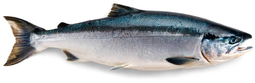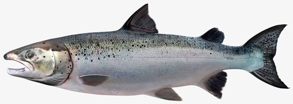 — ее также называют Атлантический лосось, или Озёрный лосось. Это крупная рыба, достигает полутора метров, а масса тела может превышать несколько десятков килограмм. Имеет серебристую чешую, что придаёт этой рыбе дополнительную красоту. Мясо у сёмги насыщенного цвета, жир рассредоточен по всей тушке. При термической обработке не меняет свой цвет.