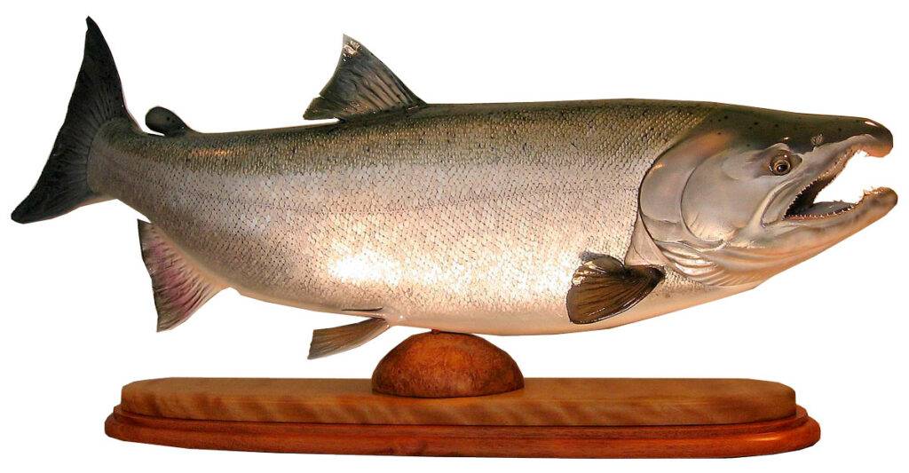 — ее также называют королевским лососем (king salmon), достигает в длине в среднем 90 см. От других лососей чавыча отличается большим (больше 15) числом жаберных лучей.