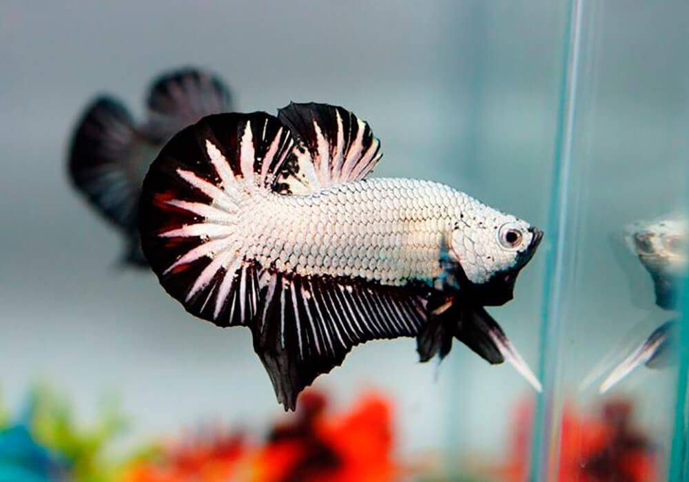Что касается расцветки, то наиболее популярными являются синий и белый цвета. Например, именно в последний оттенок окрашен часто встречающийся в аквариумах халф мун. А вот по мнению многих, самая красивая разновидность, вуалевая, встречается как синего, так и красного цвета.