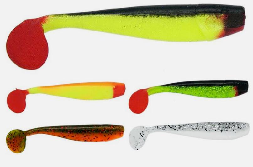 Шэды, еще один популярный тип силиконовых приманок, имеют форму рыбки с плоским хвостом, создающим эффективные колебания в воде при проводке. Эти приманки хорошо имитируют малька, что делает их незаменимыми при ловле судака