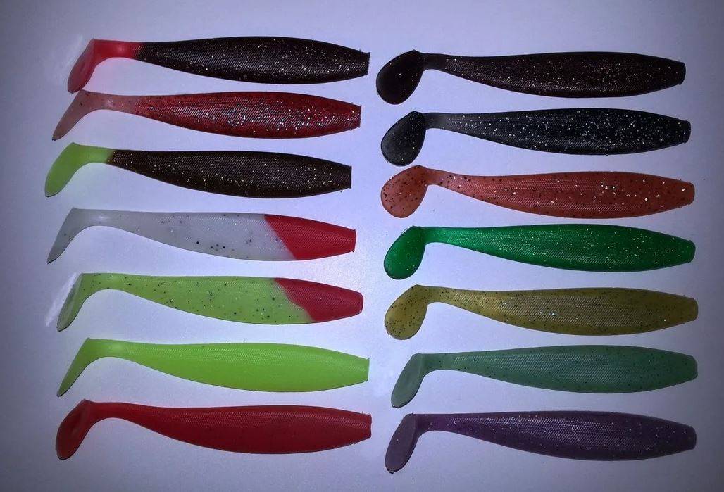 Набор виброхвостов большого размера, подходящих для ловли крупной хищной рыбы – судака, и др., а также для морской рыбалки.
