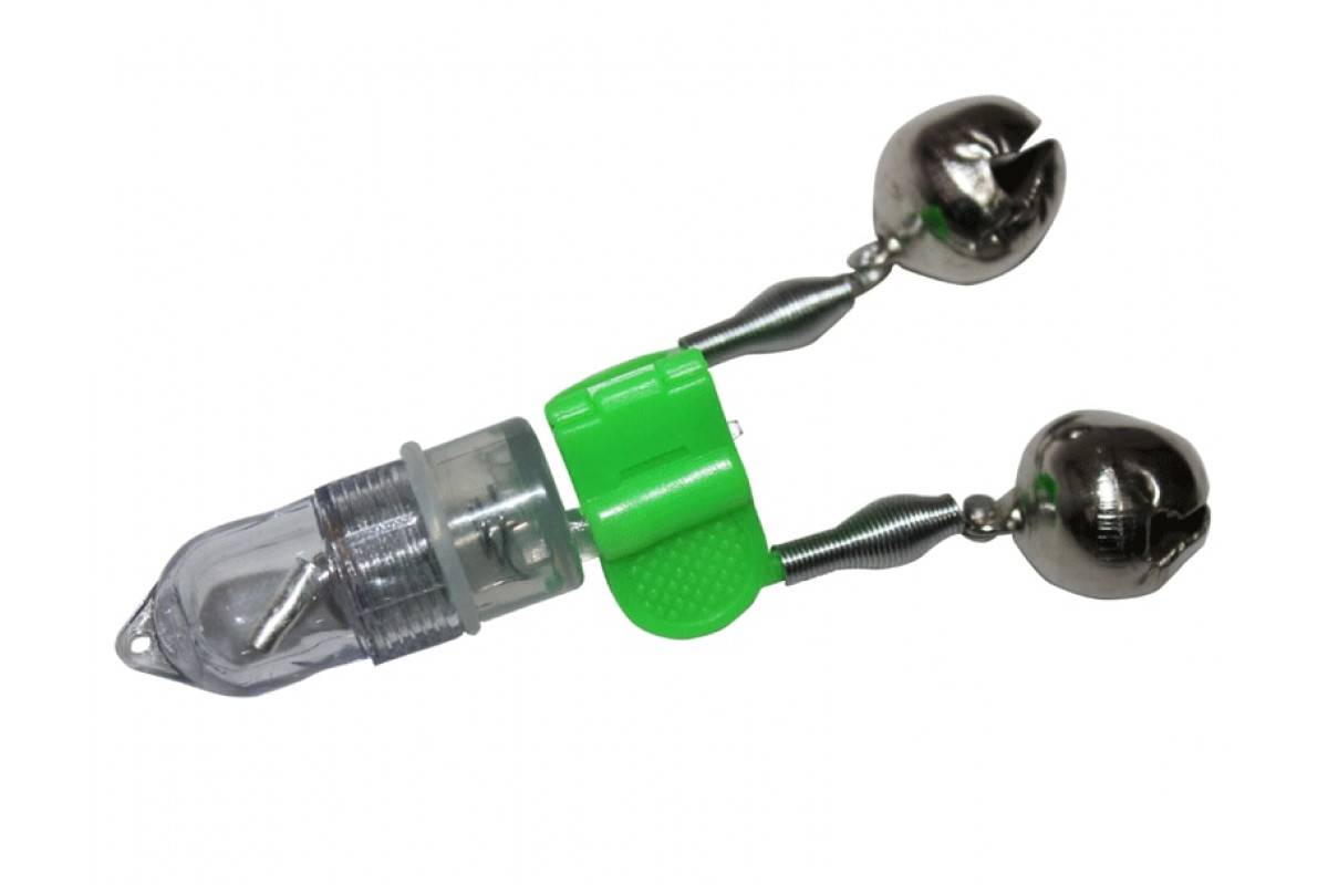 Дешевый и удобный вариант для всех видов донок, напоминающий колокольчик, только закрытый. Состоит из 2-3 полых корпусов в форме сфер с металлическими шариками внутри, которые издают звон при перемещении. В современных бубенчиках предусматривают специальные углубления, в которые можно вставлять световые индикаторы. К недостаткам этих сигнализаторов относится то, что они не срабатывают, когда рыба после клева идет к берегу и леска провисает. Крепить их лучше на стойки для удилищ, потому что при расположении на верху удочки получится перегруз.
