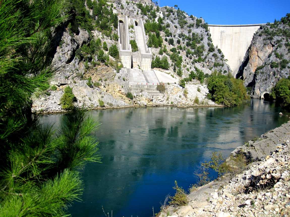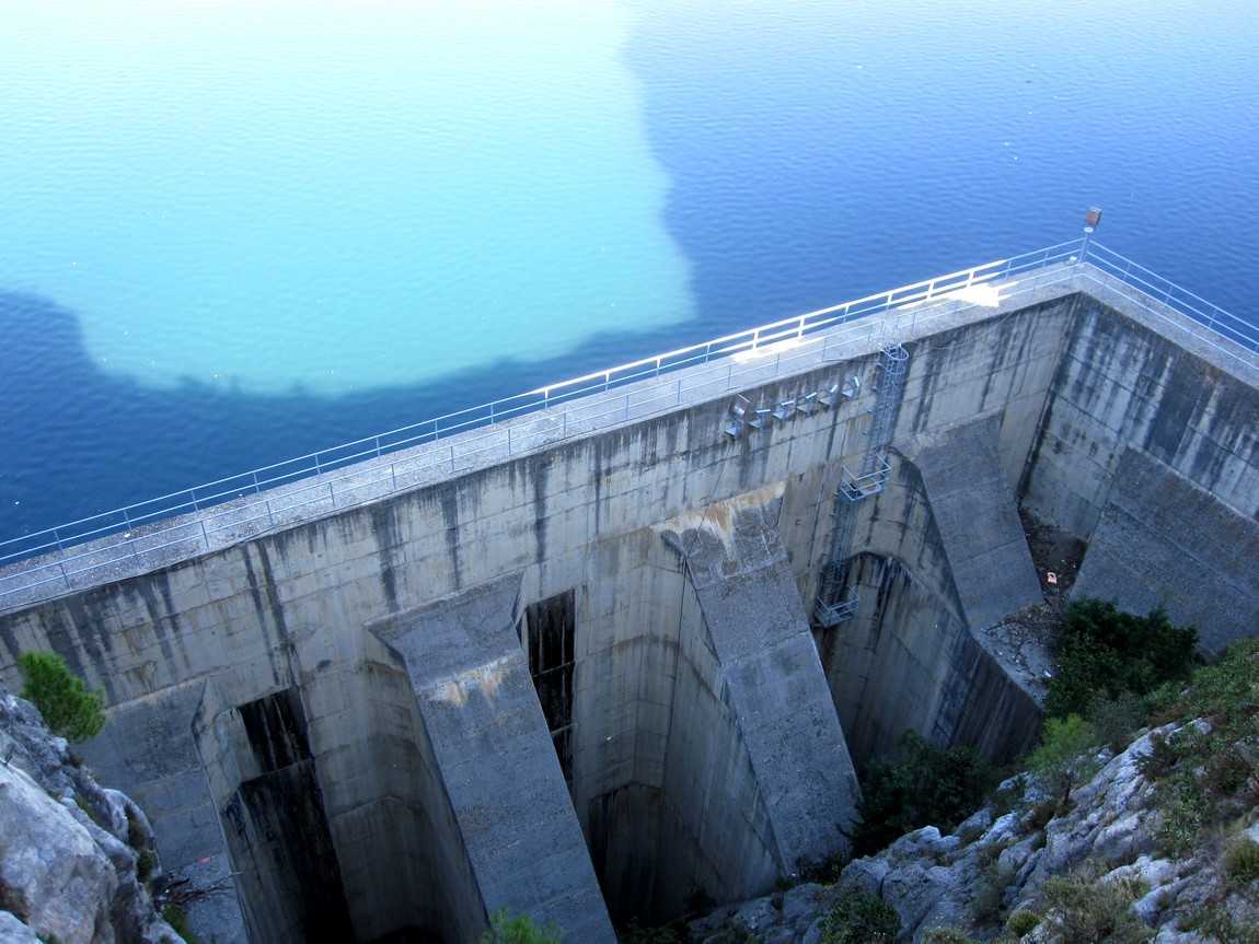 Вода у неё красивого лазурного цвета. Уже видим огромный бетонный водосброс.