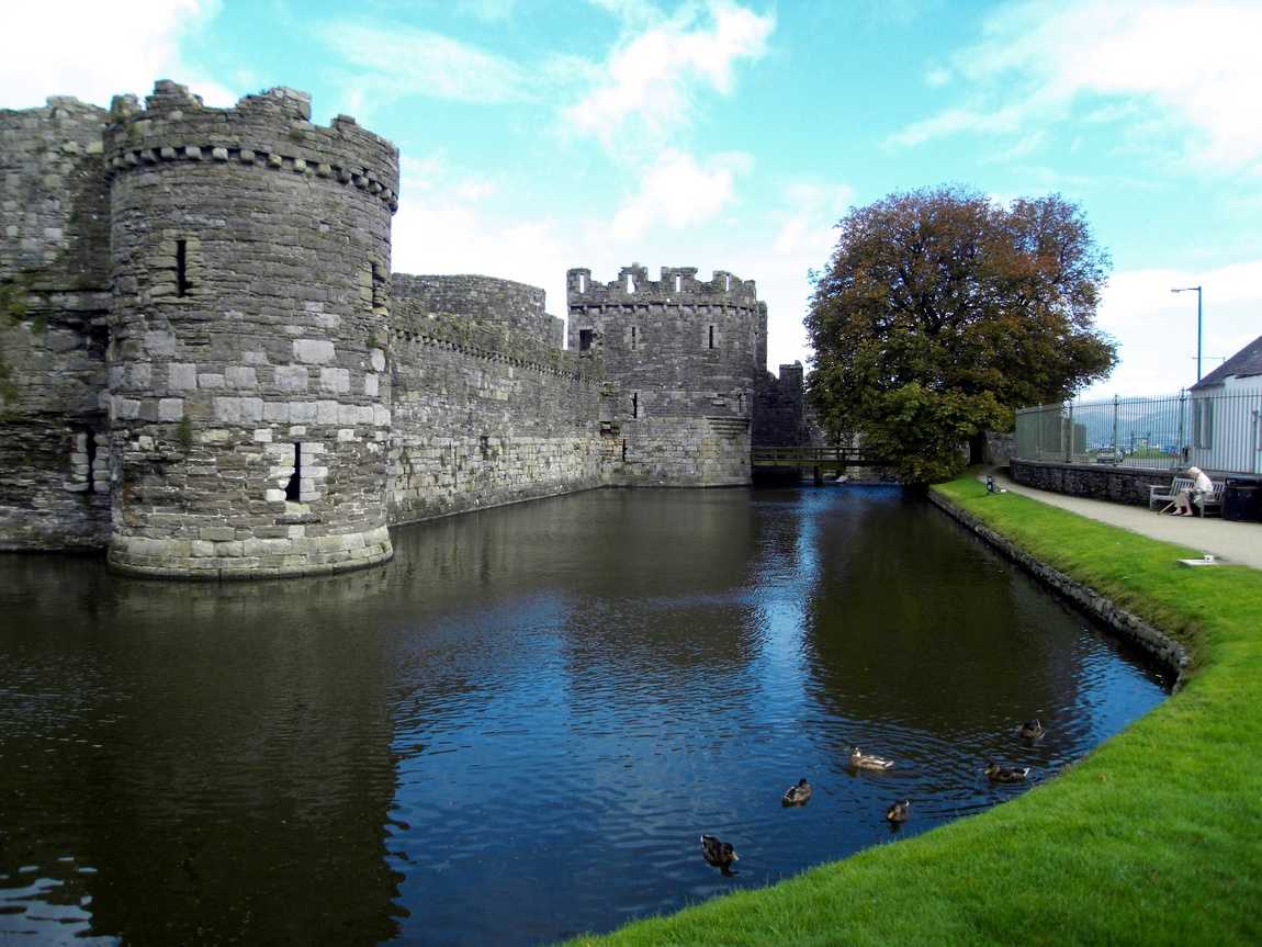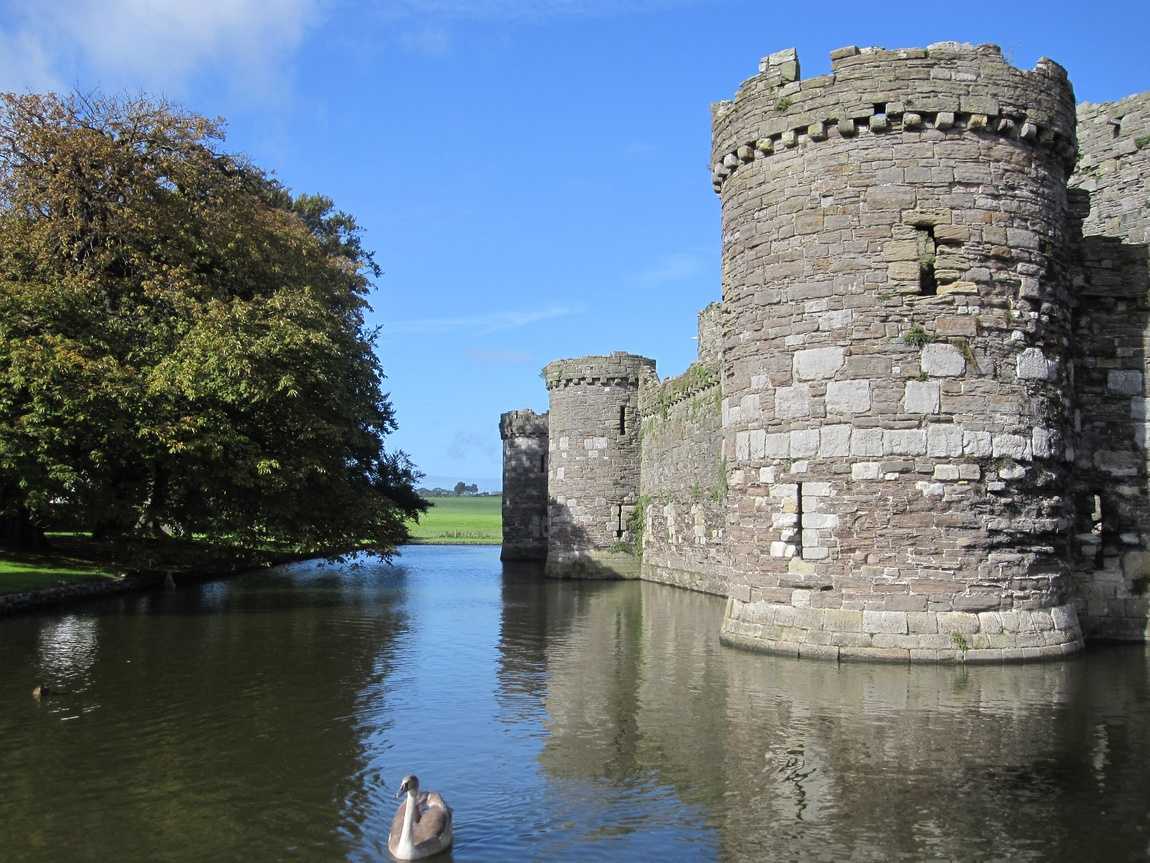 Замок Бомарис в окружении искусственного озера (Уэльс).