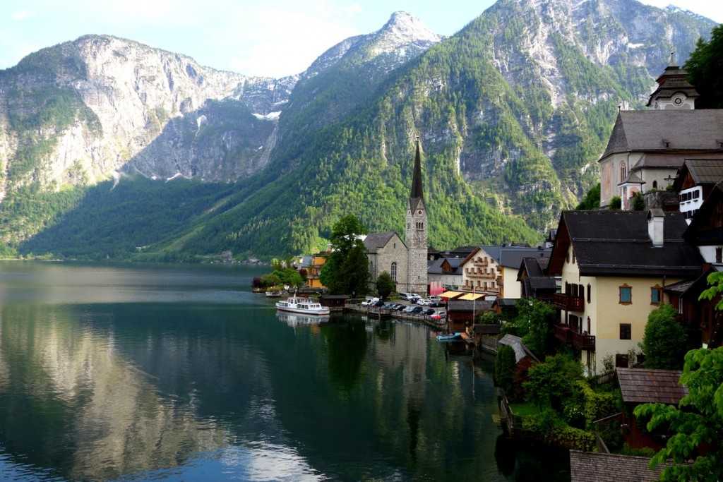 Очаровательное озеро Гальштатт находится в Австрии. Как на ладони весь посёлок расположился у самой кромки воды и крутых гор. Озеро занесено в список Всемирного наследия ЮНЕСКО.