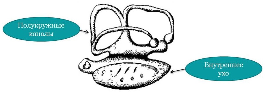 Верхняя часть перепончатого лабиринта (овальный мешочек с полукружными каналами) выполняет функцию органа равновесия, нижняя часть лабиринта воспринимает звуки. Любое изменение положения головы вызывает движение эндолимфы и отолитов и раздражает волосковые клетки.
