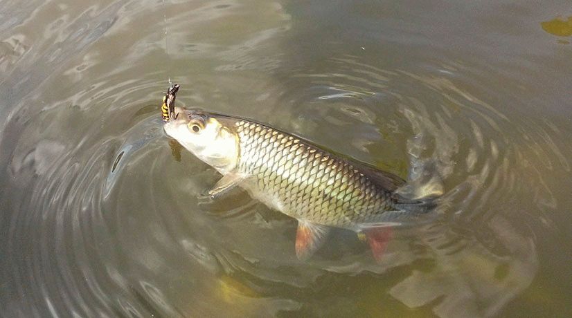 Поводку при ловле чехони нужно вести так, чтобы имитировать тонущее насекомое. То есть, нужно делать несколько плавных подтяжек и чередовать их с паузами.