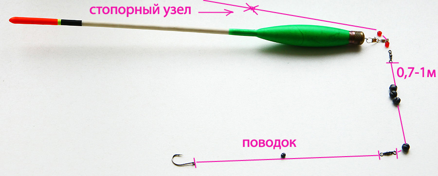 При этом лучше применять скользящий поплавок, на стопорах – как в обычной удочке. Разница тут только в том, что на конце тяжелая нагрузка.