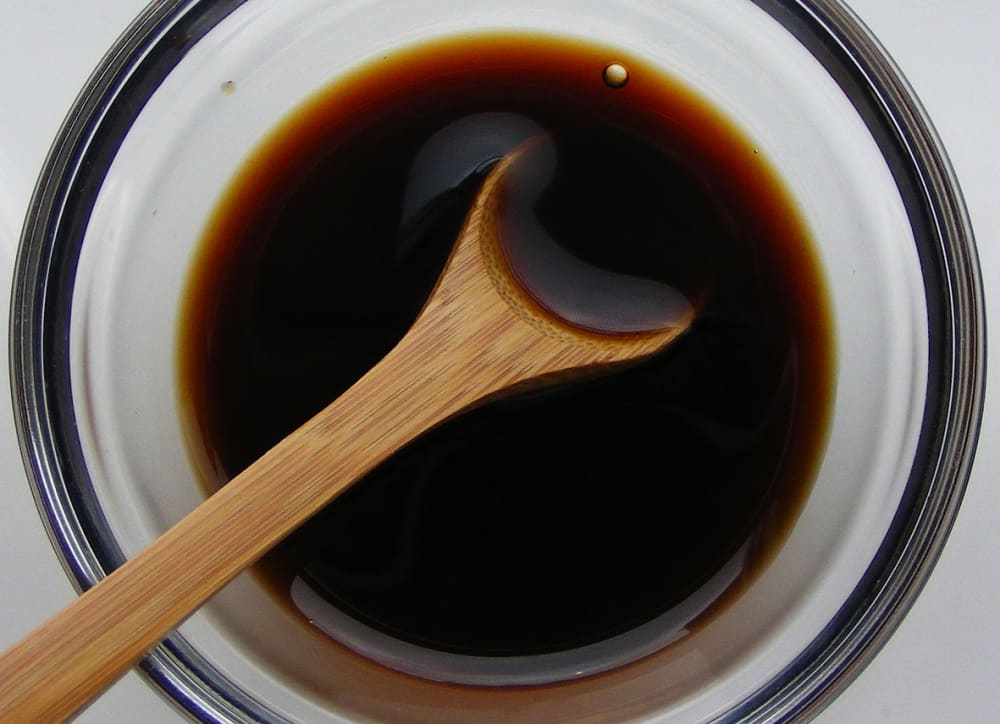 - В глубокую стеклянную или эмалированную тару влить соевый соус.