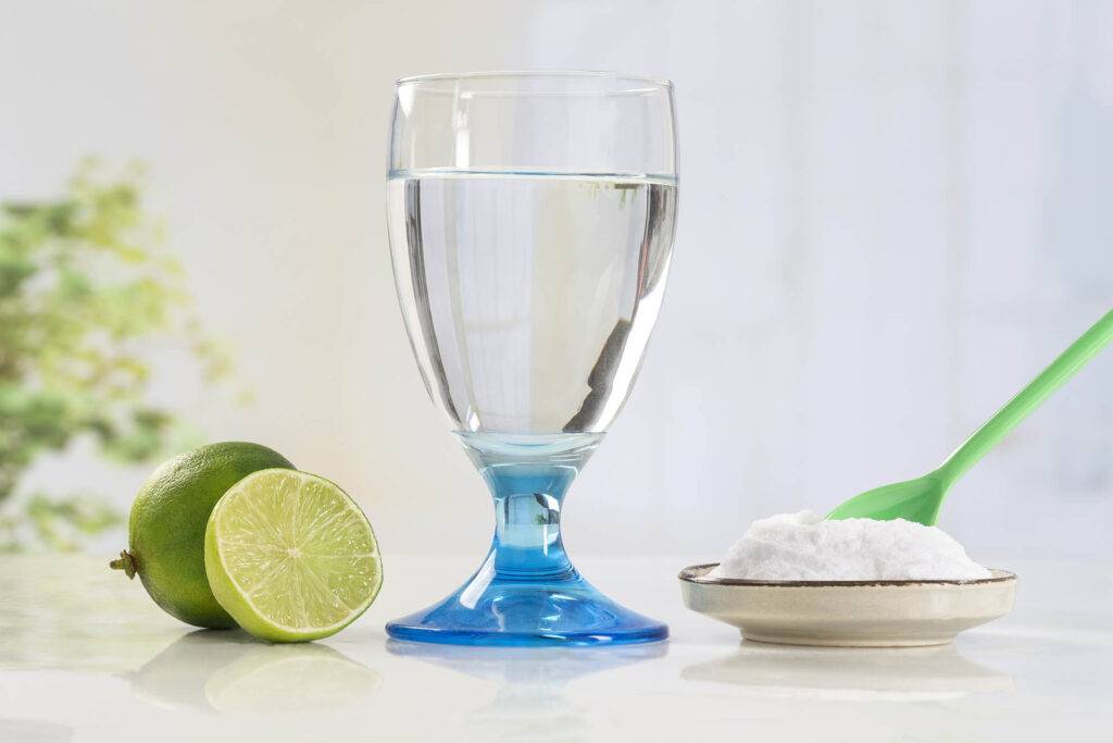- На 125 мл воды добавить по ½ ч. л. соды и сока лимона. Употреблять можно после образования пузырьков.