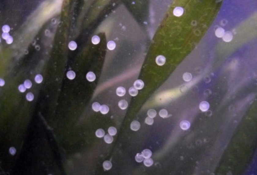 Когда пара окажется вместе, вы сможете наблюдать, как самец гоняется за самкой, а потом оба замирают на короткое мгновение. Со временем в воде будут видны мелкие икринки (их количество может достигнуть тысячи). По завершению нереста владелец должен убавить течение воды в емкости и выловить производителей из нерестовика. В противном случае они просто съедят своих будущих потомков.