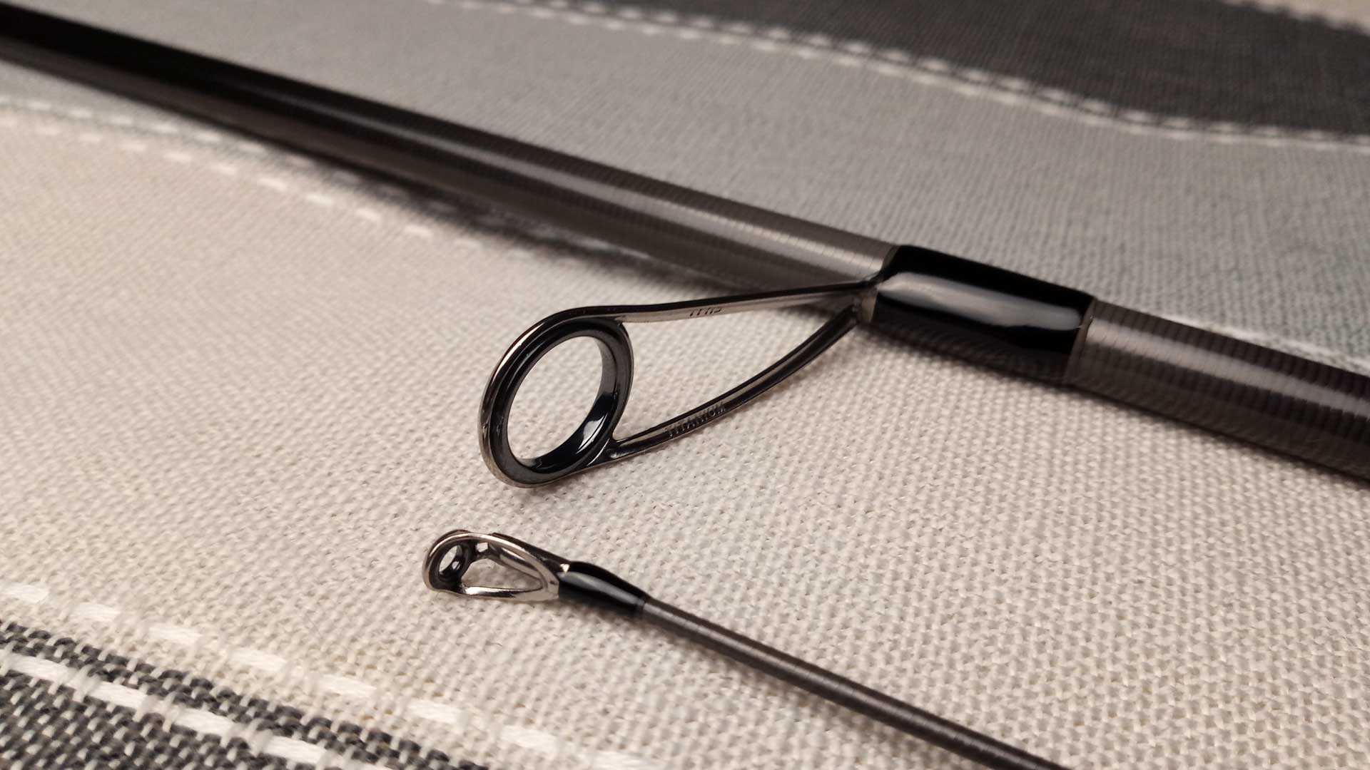 - Любой «прут» оснащен пропускными кольцами нового образца Fuji, которые имеют вставки Sic. Они абсолютно исключают захлест лески.
