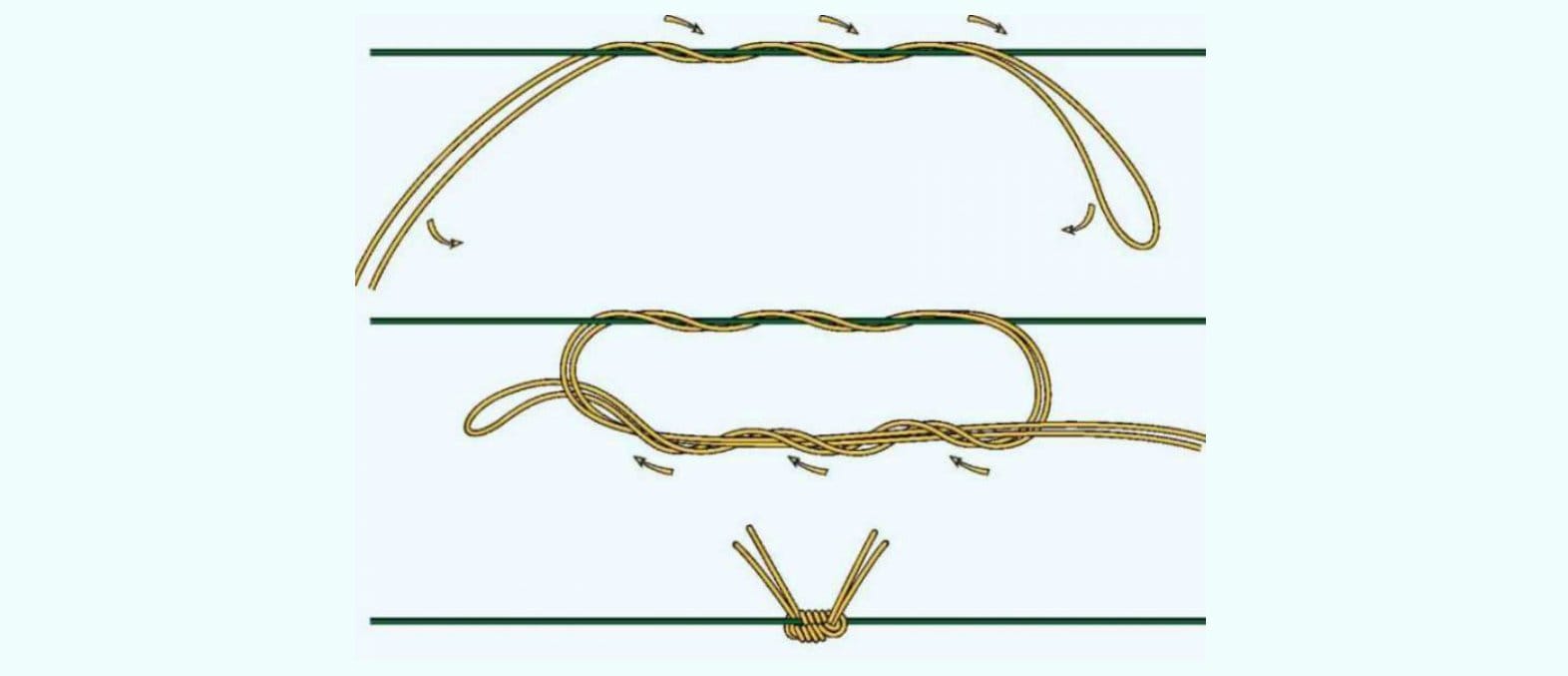 - После совершения всех витков, конец проводят через образовавшуюся петлю, узел затягивают, предварительно смочив водой.