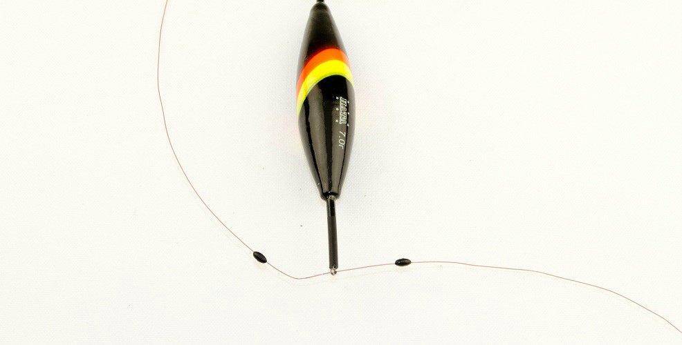 - Леска продевается в колечко поплавка, а с обеих его сторон ставятся стопоры: силиконовые или дробинки. Этот способ позволяет глухое крепление менять на скользящий монтаж, стоит только раздвинуть стопоры.
