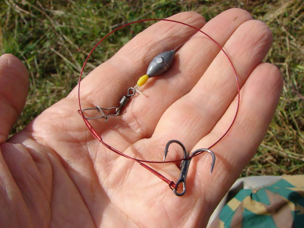 - Можно использовать короткий поводок длиной до 10 см, на который крепится тонкий крючок для наживки, а для улова применяются обычные крючки необходимого размера.