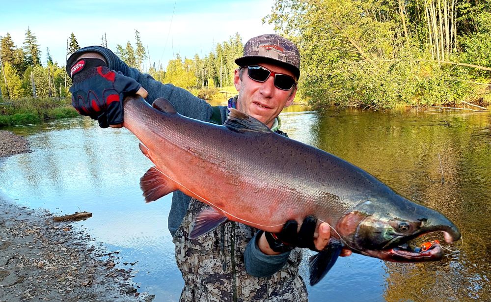 Понемногу начинается заход кижуча, может и ранняя кета залететь. Кижуч будет бежать посередине реки, чаще всего поверху. Очень жесткая рыба. До моря всего километров тридцать, так что кижуч в полной мощи и боевом настроении. Запросто крючки разгибает. Поймаете «мамку» – будет малосольная икорка. Поймаете «папашку» – сделаем котлетки. Ну а дальневосточной красноперки с кунджей – само собой наловите, но всю отпускаете.