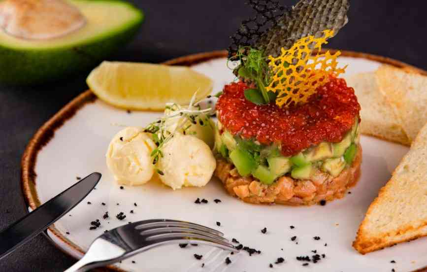Мы можем подать этот тартар из лосося и авокадо как порцию или как закуску. Для этого возьмите небольшой ломтик поджаренного хлеба, накройте его тартаром и украсьте тем, что есть под рукой. Это питательная, свежая и легкая закуска, идеально подходящая для любого случая.