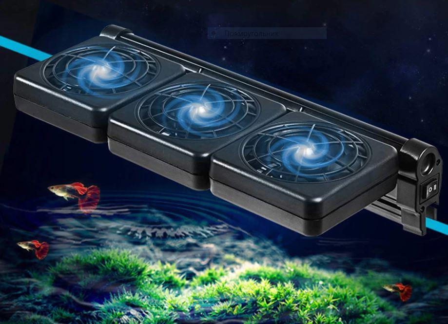 Можно использовать кулер (вентилятор, охлаждающий компьютер). Его нужно закрепить в аквариумной крышке и включить. Кулер не только охлаждает воду, но и улучшает газообмен.