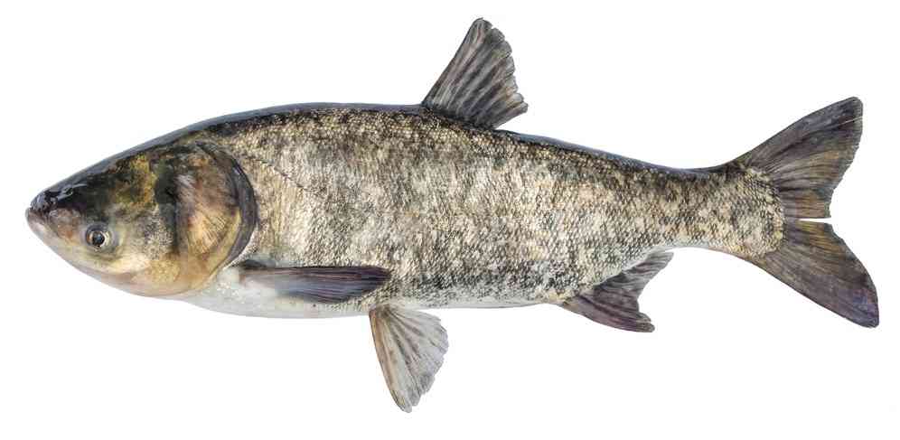 Белый толстолобик. Имеет средние размеры тела, туловище с серебристой чешуей, костью на брюхе. Отличает крупная голова, объемные плавники, длинный хвост. Питается только растительной пищей. С наступлением холодов белый толстолоб ведет пассивный образ жизни, перестает питаться;