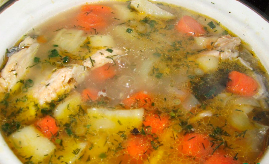 Алгоритм отваривания рыбного супа с пшеном следующий: