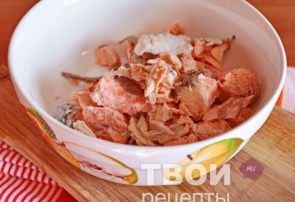 Готовую сёмгу выложить на тарелку. Убрать кожу и удалить кости.