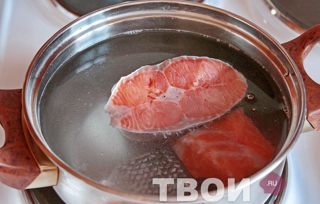 Охлаждённую сёмгу залить чистой холодной водой и сварить до готовности.