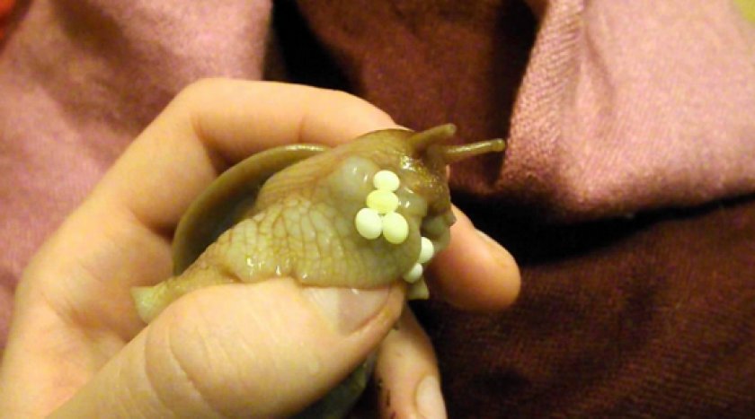 Через 1 неделю после оплодотворения в дыхательном отверстии будут видны маленькие яички. Яйца улитка вынашивает 1-2 недели