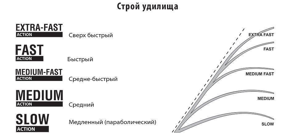 Медленный строй означает, что удилище будет гнуться целиком, что позволяет далеко забрасывать приманки, однако кончик бланка не очень хорошо реагирует на поклевки. На таких моделях есть обозначение S (Slow – медленный).