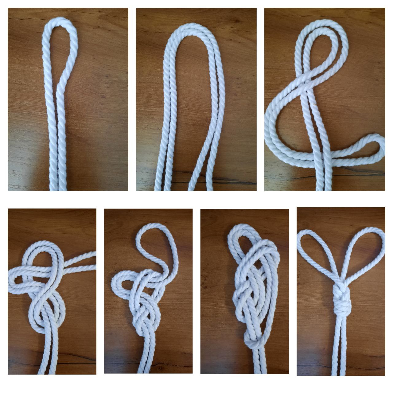 - Берём верёвку. Ближе к концу делаем петлю диаметром в 10 сантиметров.
