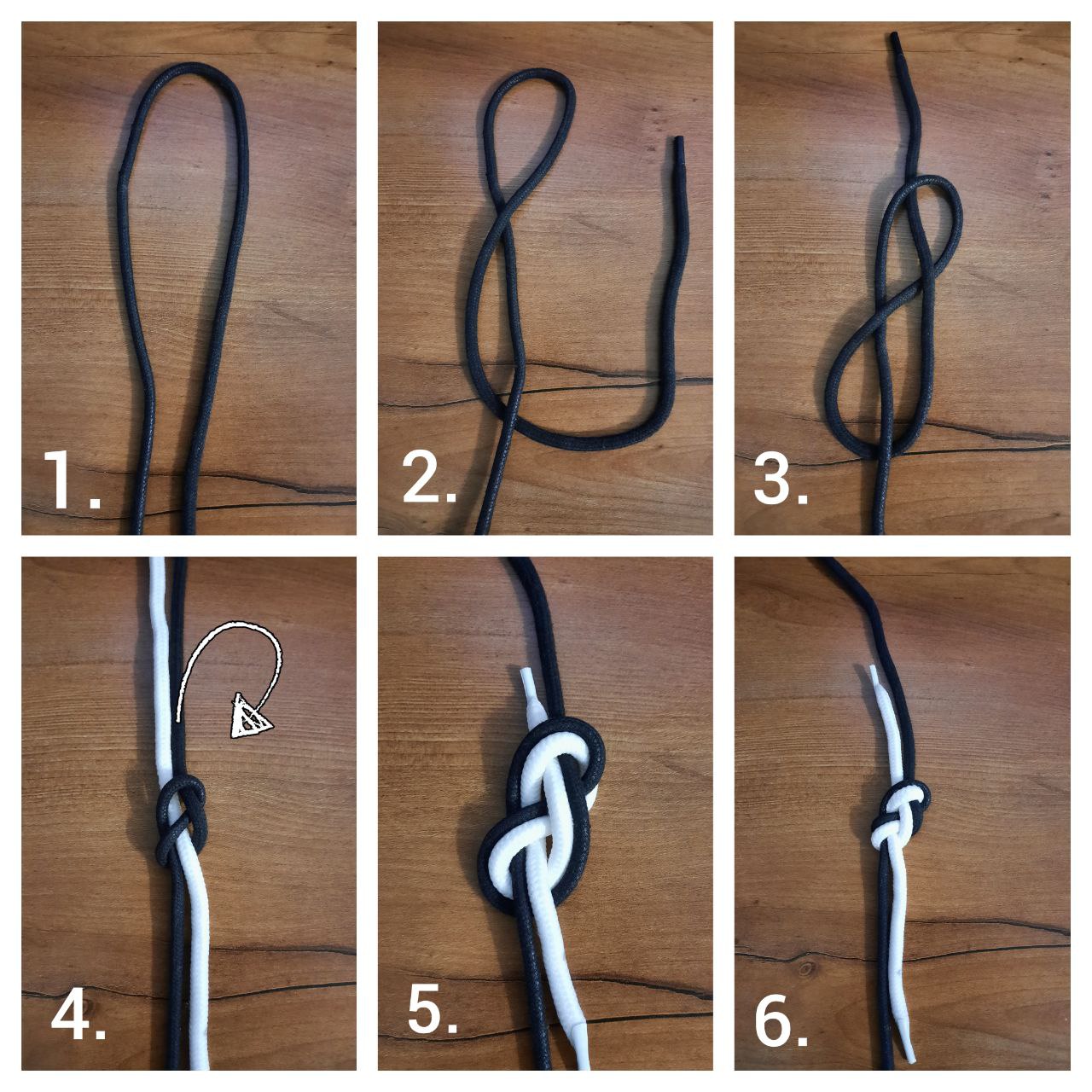 Процесс связывания похож на узел «восьмерку», но имеет некоторые нюансы: