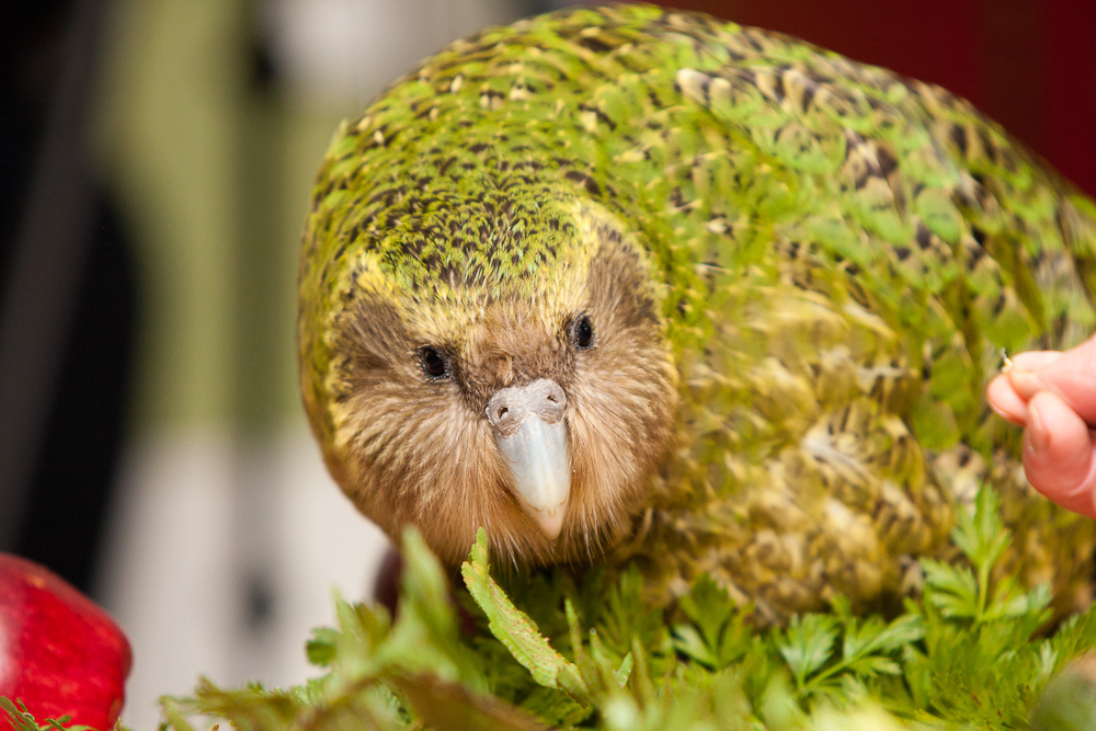 Весьма необычный представитель семейства попугаевых, по внешнему виду напоминающий сову. Родом какапо из Новой Зеландии. На сегодняшний день их осталось катастрофически мало и люди всеми силами пытаются сохранить их.