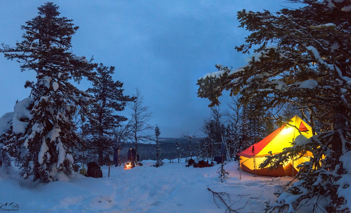Несмотря на светлые тона в палатке обязательно должны быть яркие вставки, что бы на снежном белом фоне она выделялась, и на вас случайно никто не наехал на снегоходе или другом транспорте.