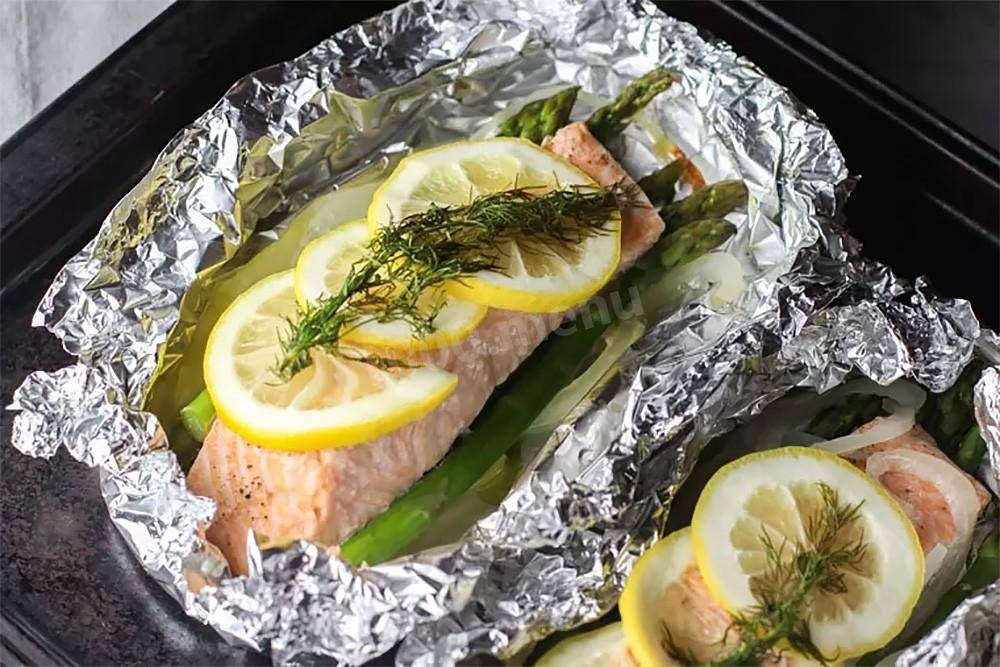 Поместите рыбу на тарелку. Аккуратно открыть фольгу.