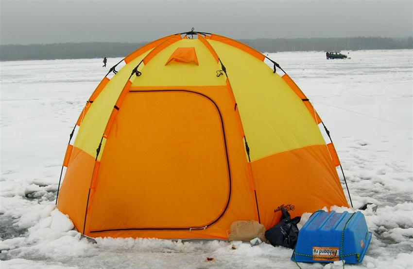 - Кубические — утепленные трех- и двухслойные полые модели, которые можно собрать за 2−3 минуты. Прочно закрепляются на льду, позволяют передвигаться в полный рост, обеспечивают уютную и теплую атмосферу.