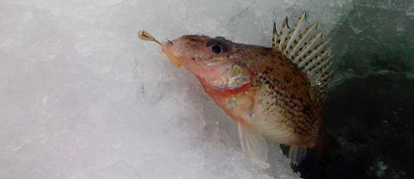 В декабре окунь довольно активен, поэтому не стоит задерживаться на просверлённой лунке более 2−3 минут. Если в течение этого времени рыба никак не проявила свою активность, следует сверлить новую лунку. При вялом клёве лучшие результаты показывает мормышечная снасть.