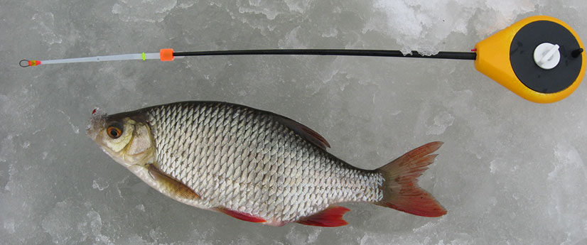 По первому льду отлично ловится плотва. Для ловли этой рыбы, как правило, применяют лёгкую мормышечную снасть, которая состоит из: