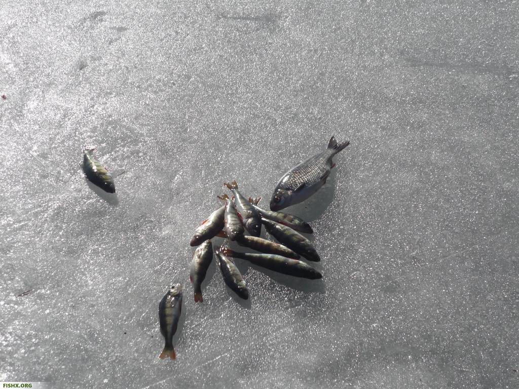 По первому льду хорошо будет ловиться плотва, окунь, подлещик, ерш. Искать эту рыбу следует на глубине 1,5-2 метра. Самыми перспективными местами являются участки в нескольких метрах от зарослей камыша, а также границы выхода из заливов. Хищника (судак, щука, крупный окунь) всегда нужно искать рядом с участками, где происходит ловля мирной рыбы.