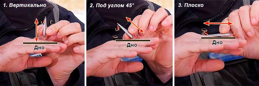 Но тем не менее основная игра обычных вертикальных блесен все-таки рассчитана на то, что эти приманки всегда стартуют из вертикального положения.