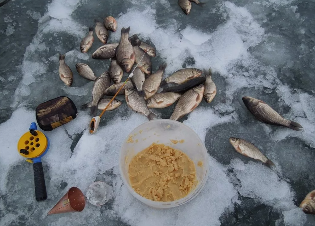 Прикорм подходит для сезона глухозимья до окончания холодов, схода ледового покрытия. Потребуются: панировочные сухари, просеянный сквозь сито грунт, мелкоперемолотая макуха, мотыль, свиная кровь.